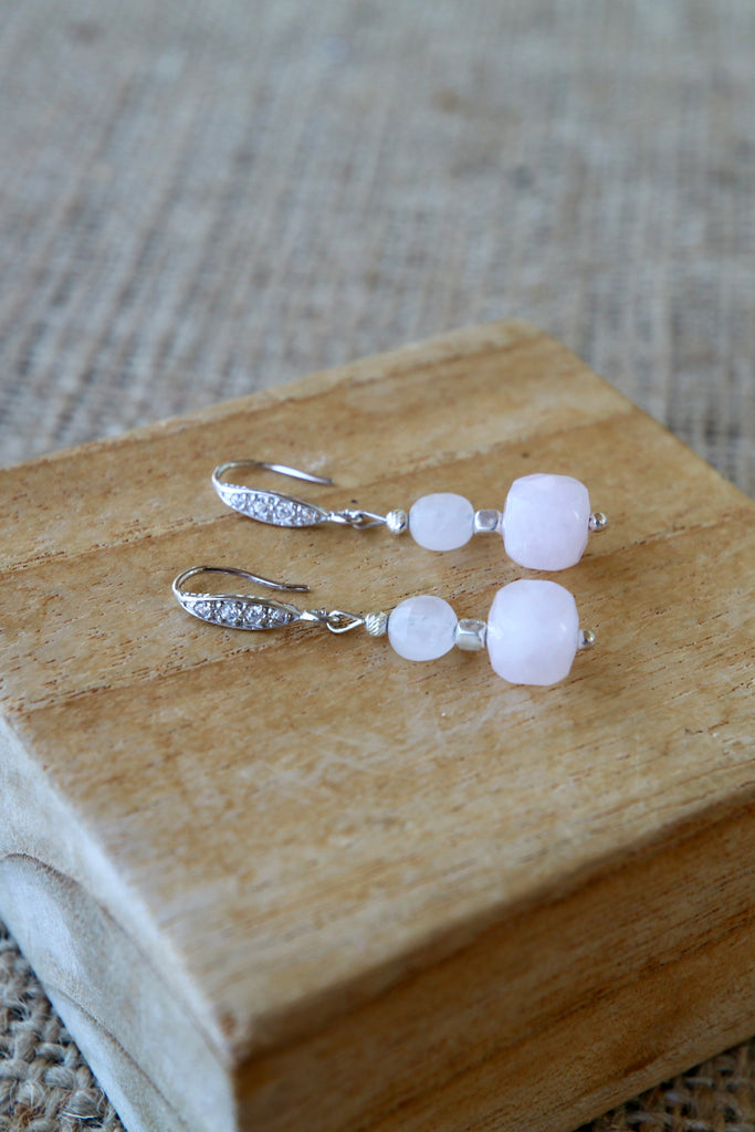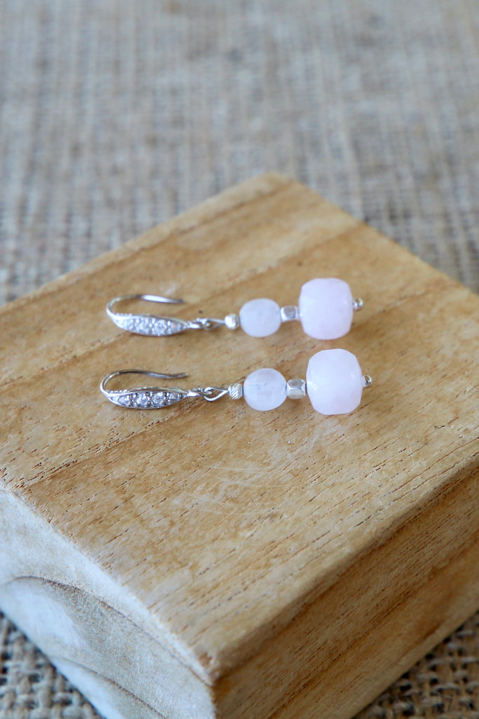 Ces boucles d’oreilles en quartz rose naturel facetté sont confectionnées à la main dans notre atelier, avec des pierres soigneusement taillées pour refléter la lumière avec élégance. Douces et féminines, elles apportent éclat et tendresse à toutes vos tenues.